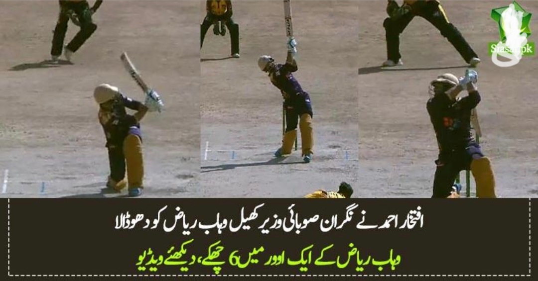 افتخار احمد نے نگران صوبائی وزیرکھیل وہاب ریاض کو دھوڈالا۔۔ وہاب ریاض کے ایک اوور میں 6 چھکے، دیکھئے ویڈیو مطلب وزیر کھیل کا عہدہ