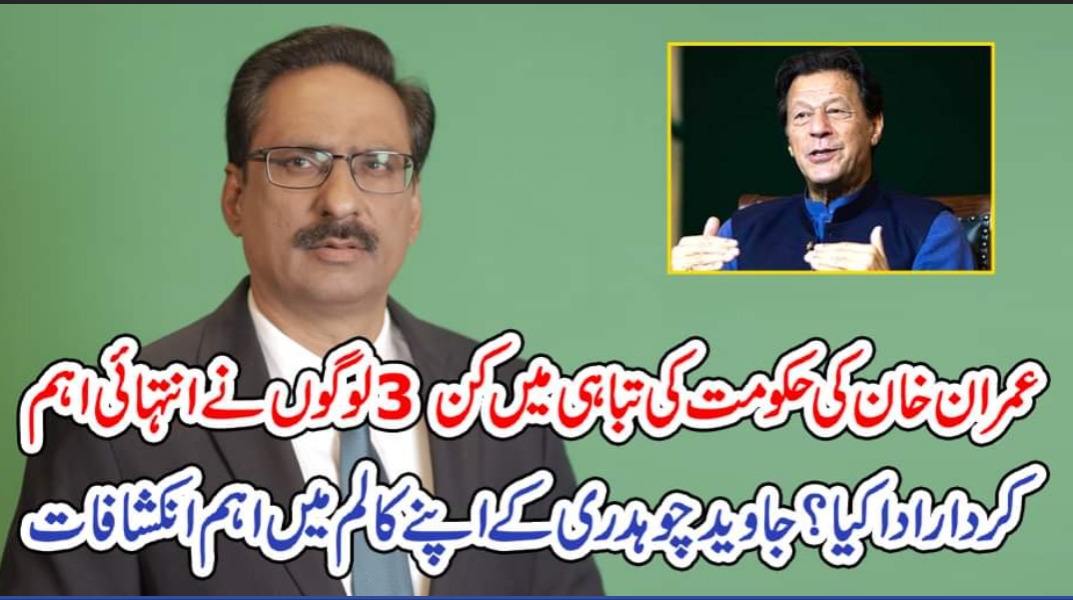 اسلام آباد (مانیٹرنگ ڈیسک)معروف صحافی جاوید چوہدری اپنے آج کے کالم میں لکھتے ہیں کہ عمران خان کی حکومت کی تباہی میں تین لوگوں نے