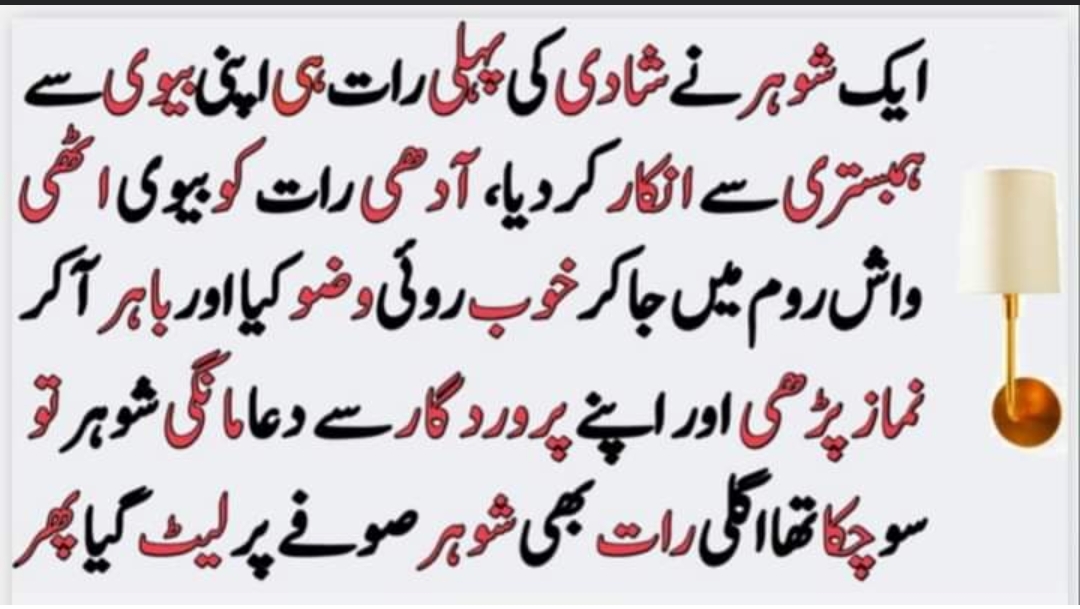 اپنی نئی نویلی سانولی رنگت کی بیوی کو دیکھ کر اس کا دل بجھ سا گیا وہ دل کو موہ لینے والی بیوی چاہتا تھا۔