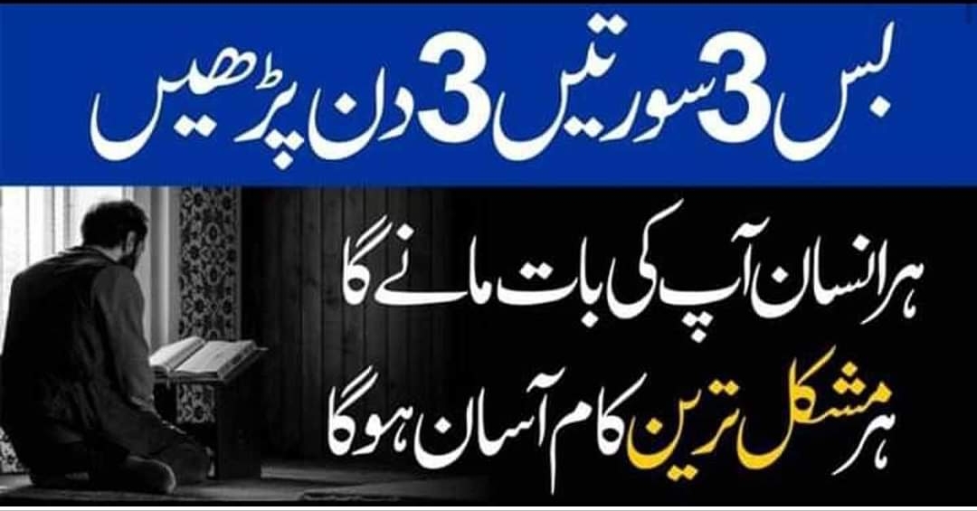 قرآن ِ پاک کی تین سورتوں کے بارے میں بتاؤں گا کہ اگر آپ ان کو تین دن پڑ ھیں گے تو انشاء اللہ تعالیٰ