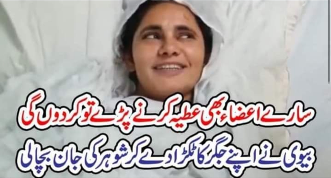 اسلام آباد (مانیٹرنگ ڈیسک )اہلیہ نے شوہر سے محبت کی مثال قائم کر دی ، اپنے جگر کا ٹکڑا دے کر شوہر کی جان بچا