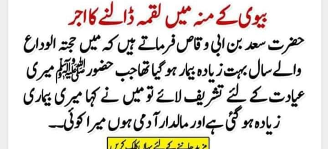 حضرت سعد بن ابی وقاص رضی اللہ تعالیٰ عنہ فرماتے ہیں کہ میں حجۃ الوداع والے سال بہت زیادہ بیمار ہو گیا تھا‘ جب حضور
