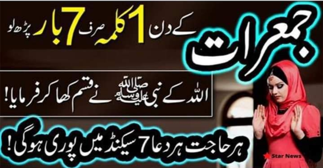 ایک ایسا عمل ہے جو کہ جمعرات کے حوالے سے ہے انشاءاللہ!جمعرات کے دن میں آپ ان کلمات کو صرف اور صرف سات مرتبہ پڑھ