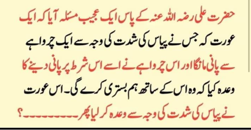 منقول ہے حضرت عمر فاروق رضی اللہ عنہ کے پاس ایک عورت کا مقدمہ پیش ہوا جس نے پیاس کی شدت کی وجہ سے ایک