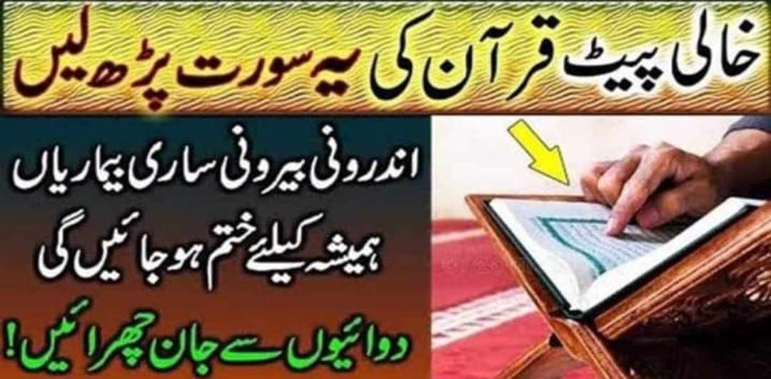 ایک قرآنی سورت کا خاص ترین وظیفہ ۔اگر یہ عمل آپ صبح خالی پیٹ کر لیتے ہیں ۔اس ایک سورت کو آپ خالی پیٹ پڑھ