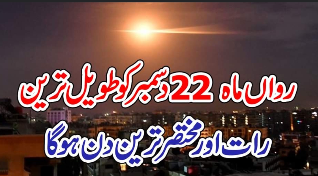 سرگودھا (این این آئی)رواں ماہ 22 دسمبر کو طویل ترین رات اور مختصر ترین دن ہوگا۔زرائع کے مطابق رواں ماہ 22 دسمبر کو رات کا